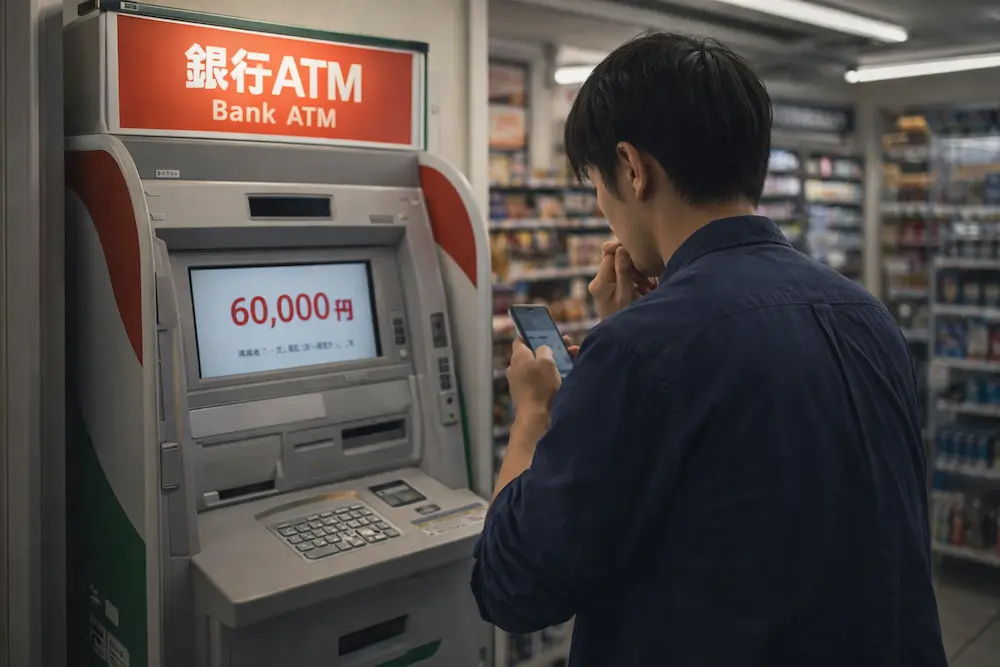彼は「近くにATMありますか?」と言い、少し歩いた場所にあるファミリーマートへ向かいました。