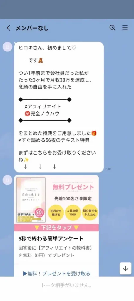 XのリンクからLINEに登録すると次のようなメッセージが届きました。